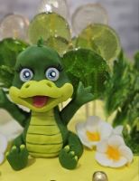 Покрытие - кремовое, в декоре - фигурка из мастики ручной лепки, леденцы, сахарные цветы