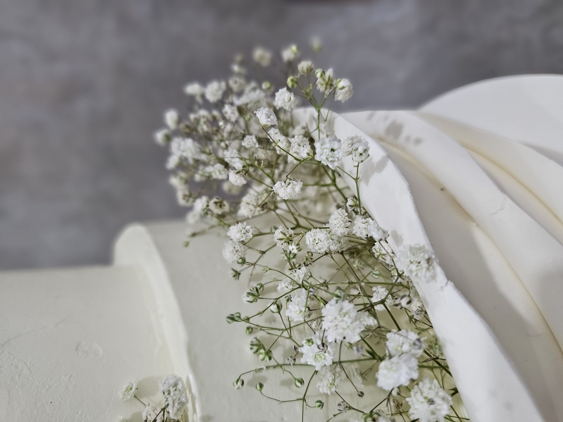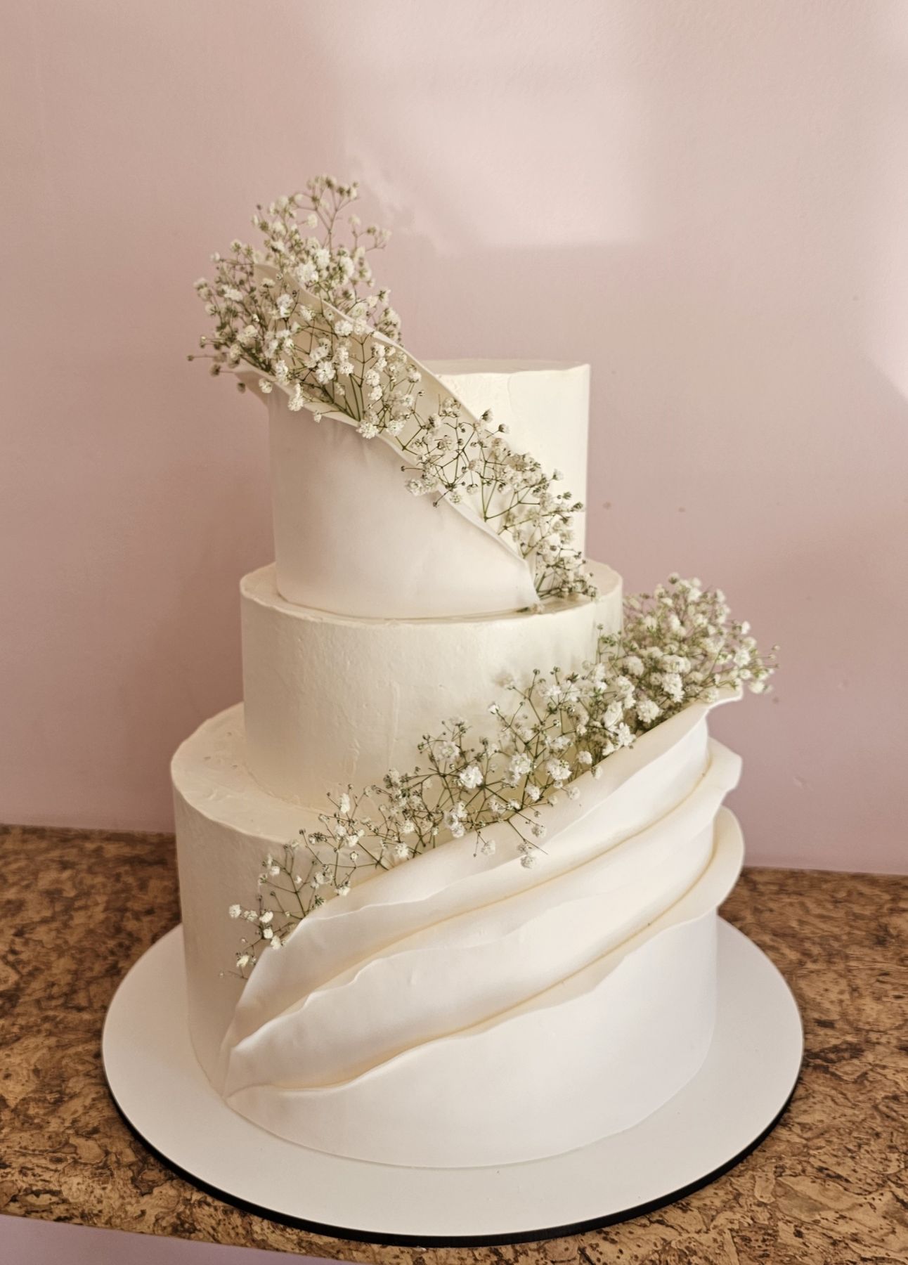 Кремовый торт с мастичным декором и цветами гипсофилы